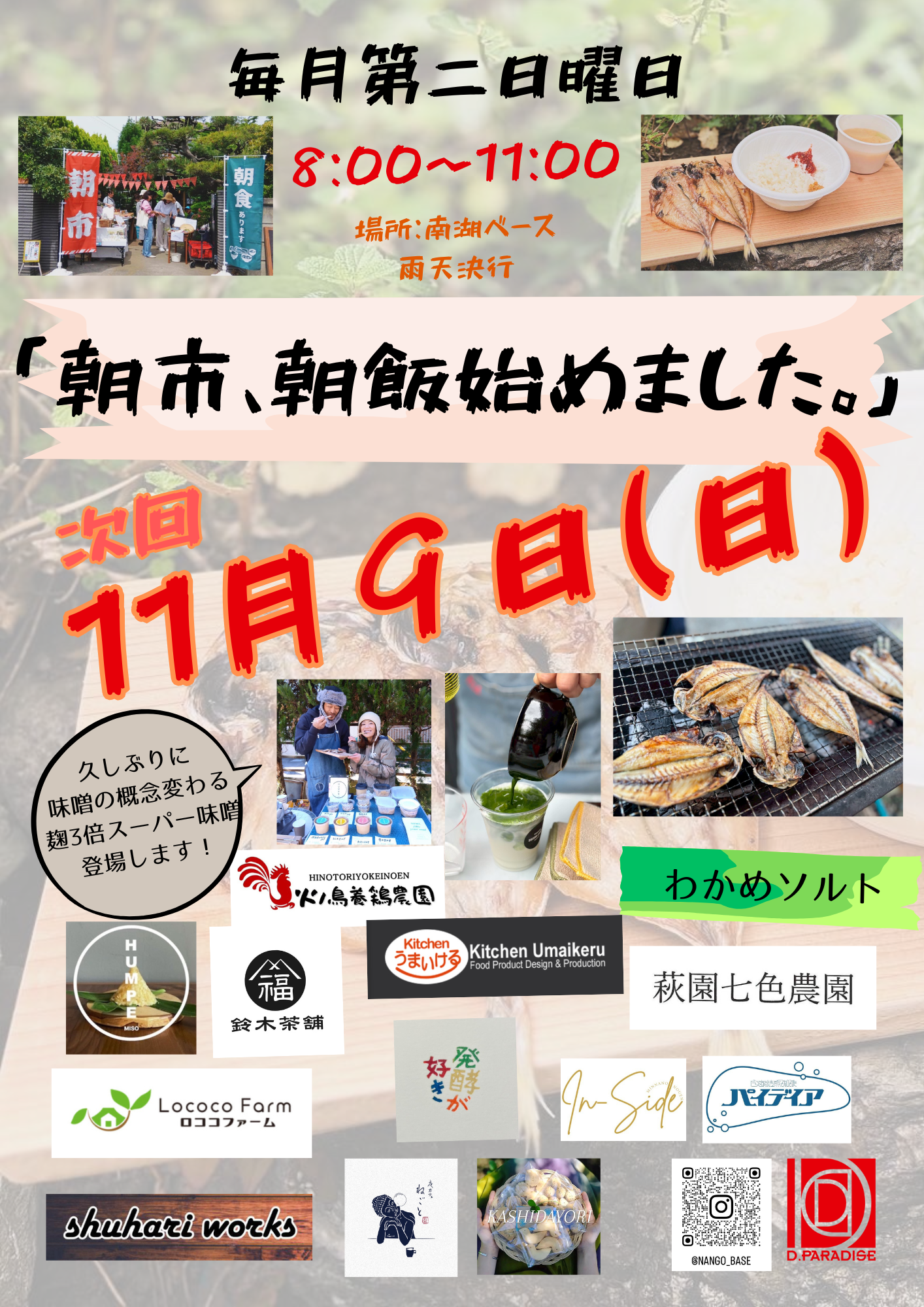 「朝市、朝飯始めました。」というイベントを開催しております。