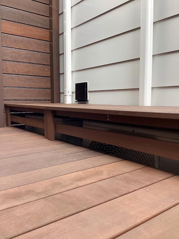 裏庭ウッドデッキ&フェンスに室外機カバーを施し
